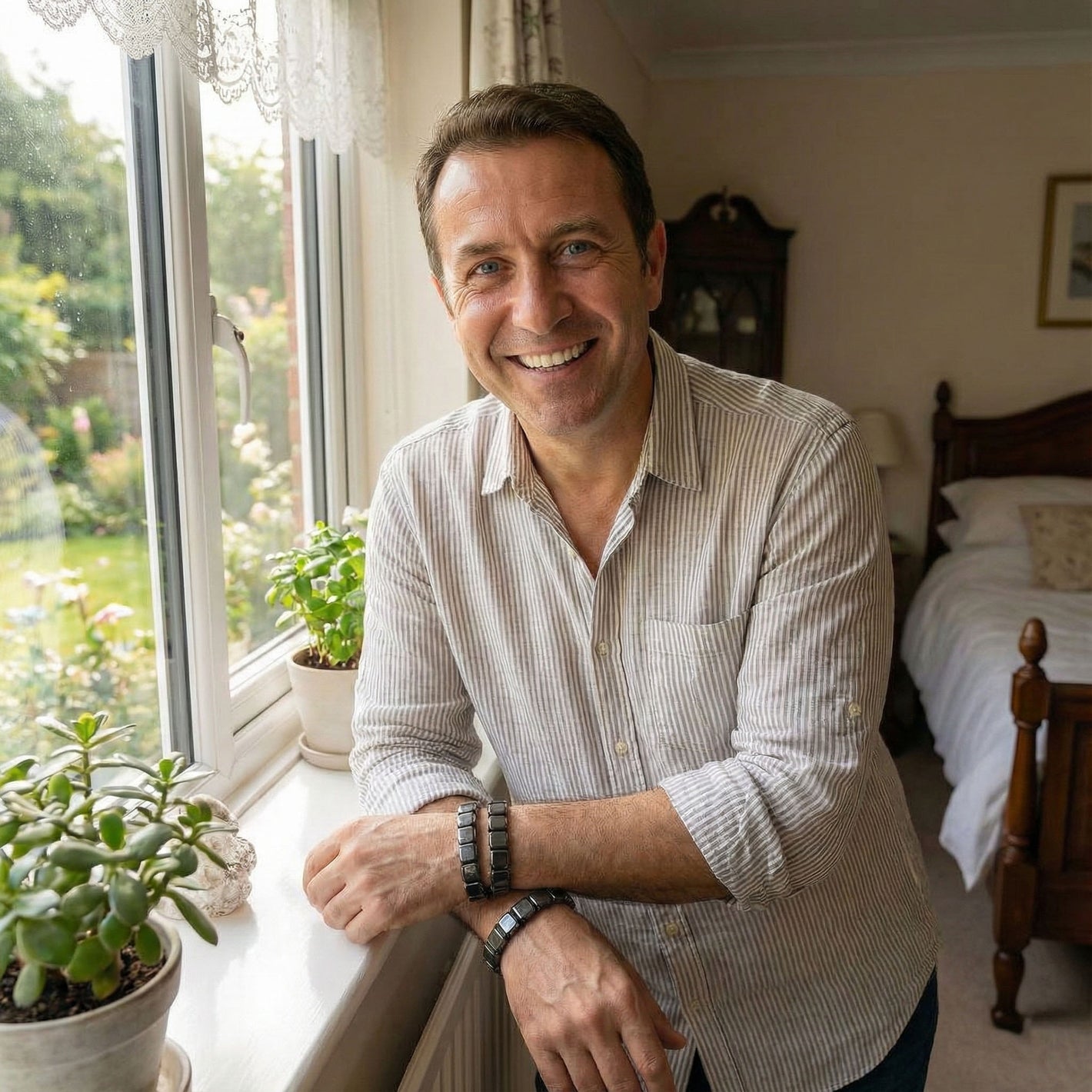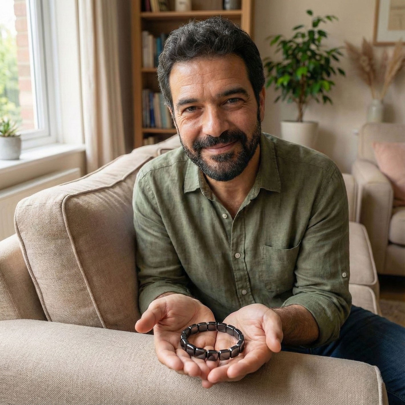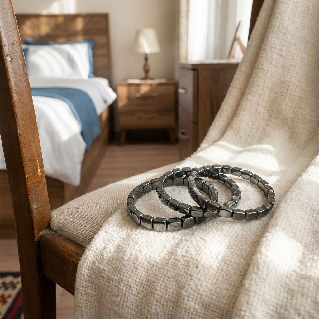 Hematit bilekliği gece boyunca takıyor. Sürekli kullanımda bile rahat ve etkili kalıyor.